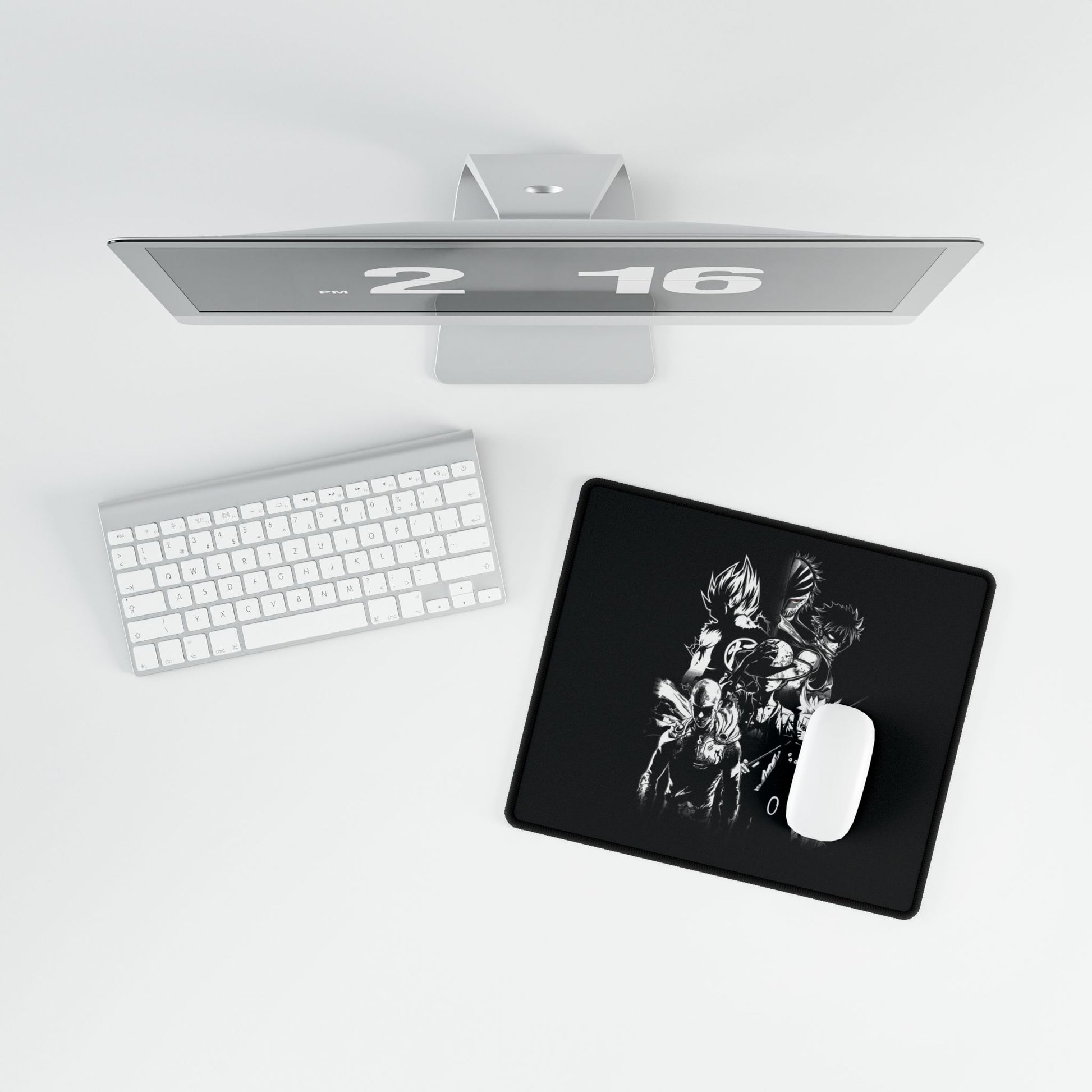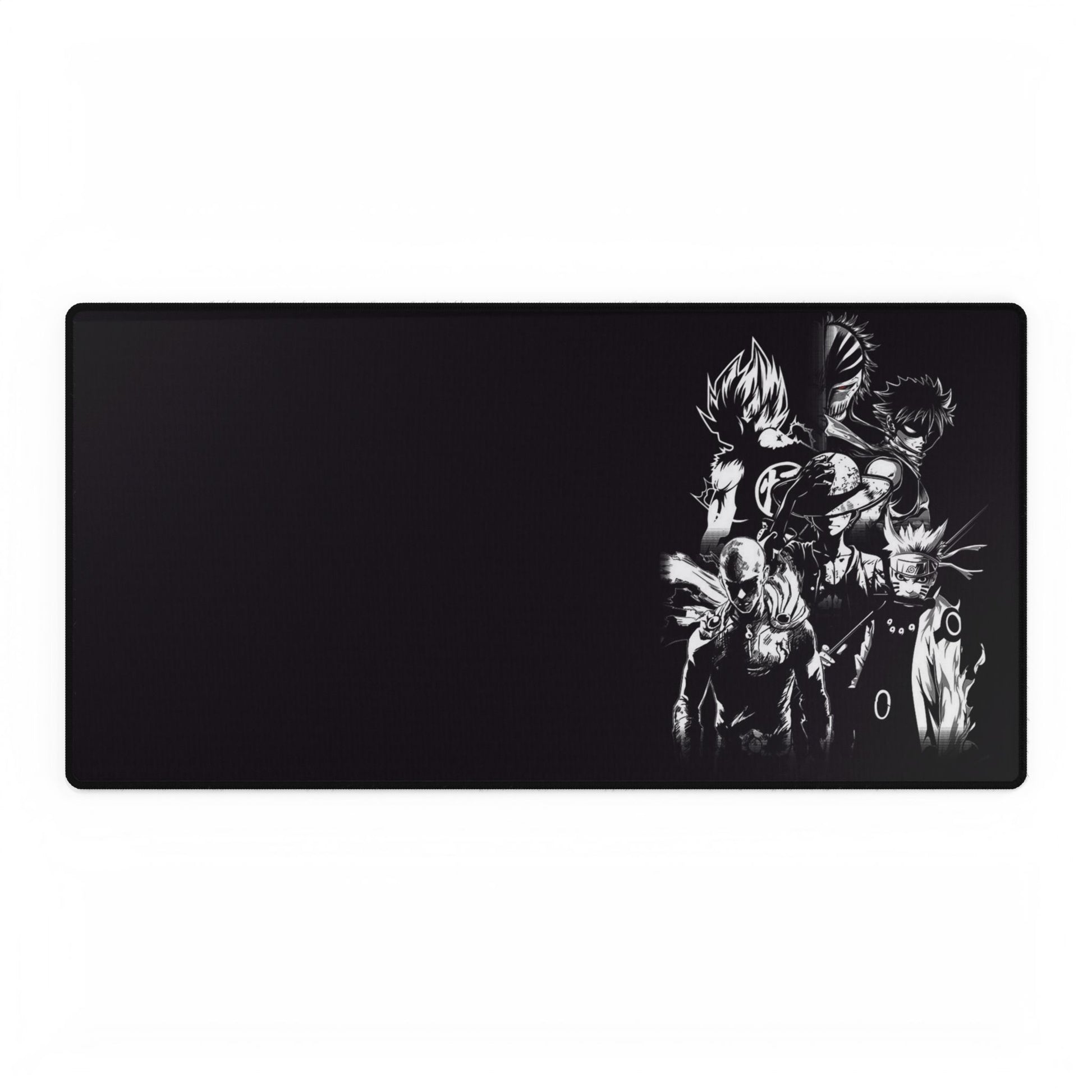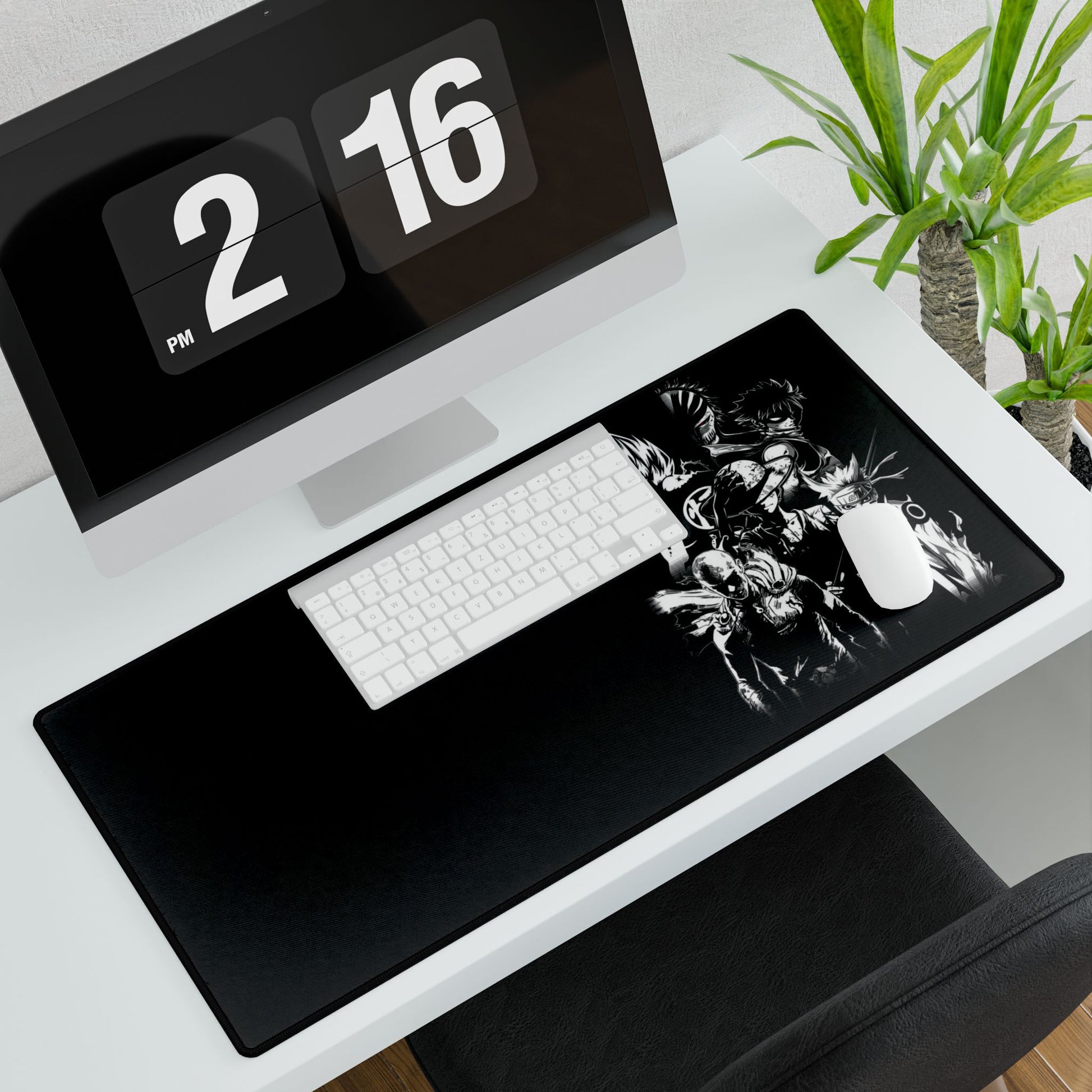 Anime Black Side Style Desk Mat — Monochrome Hero Collage Gaming Mousepad