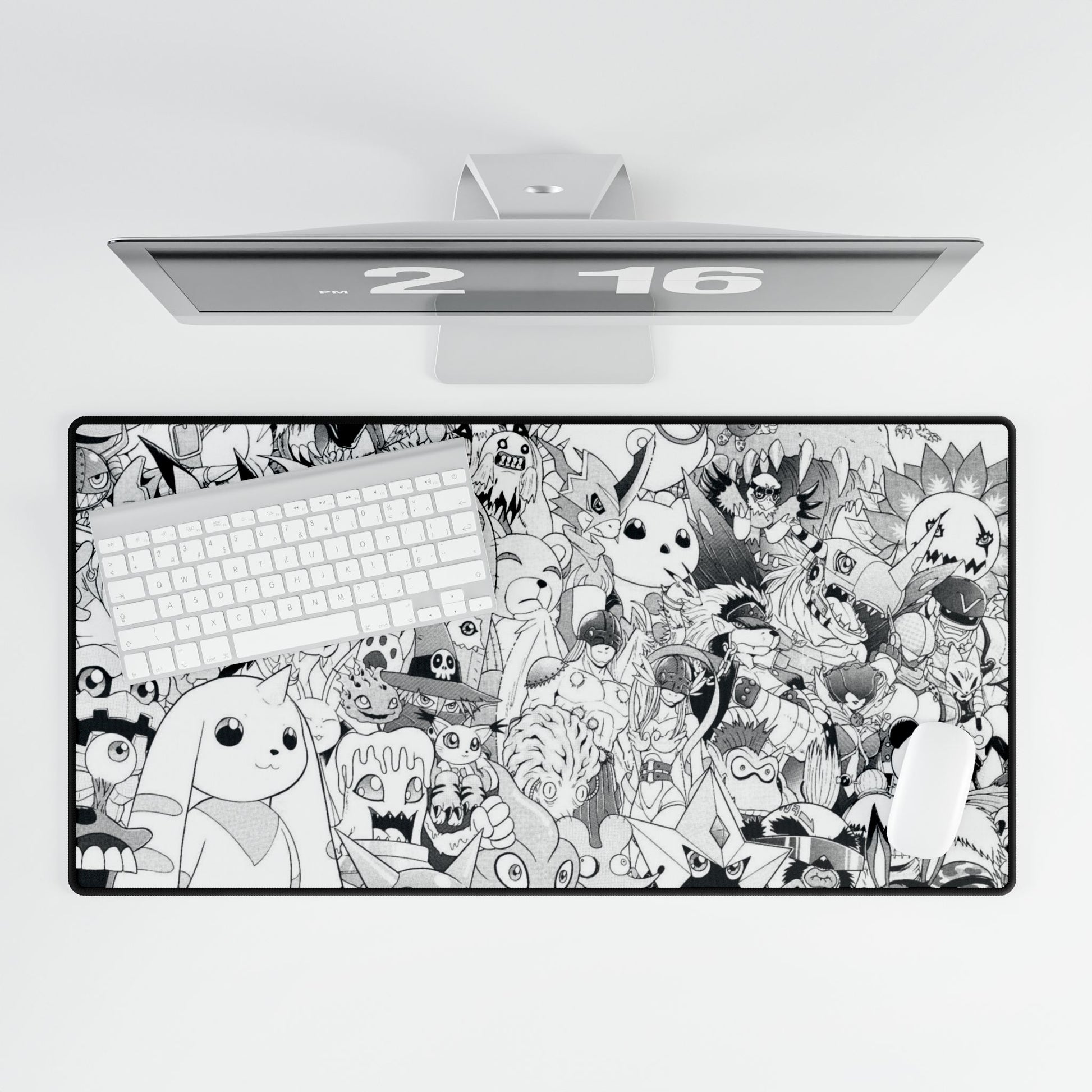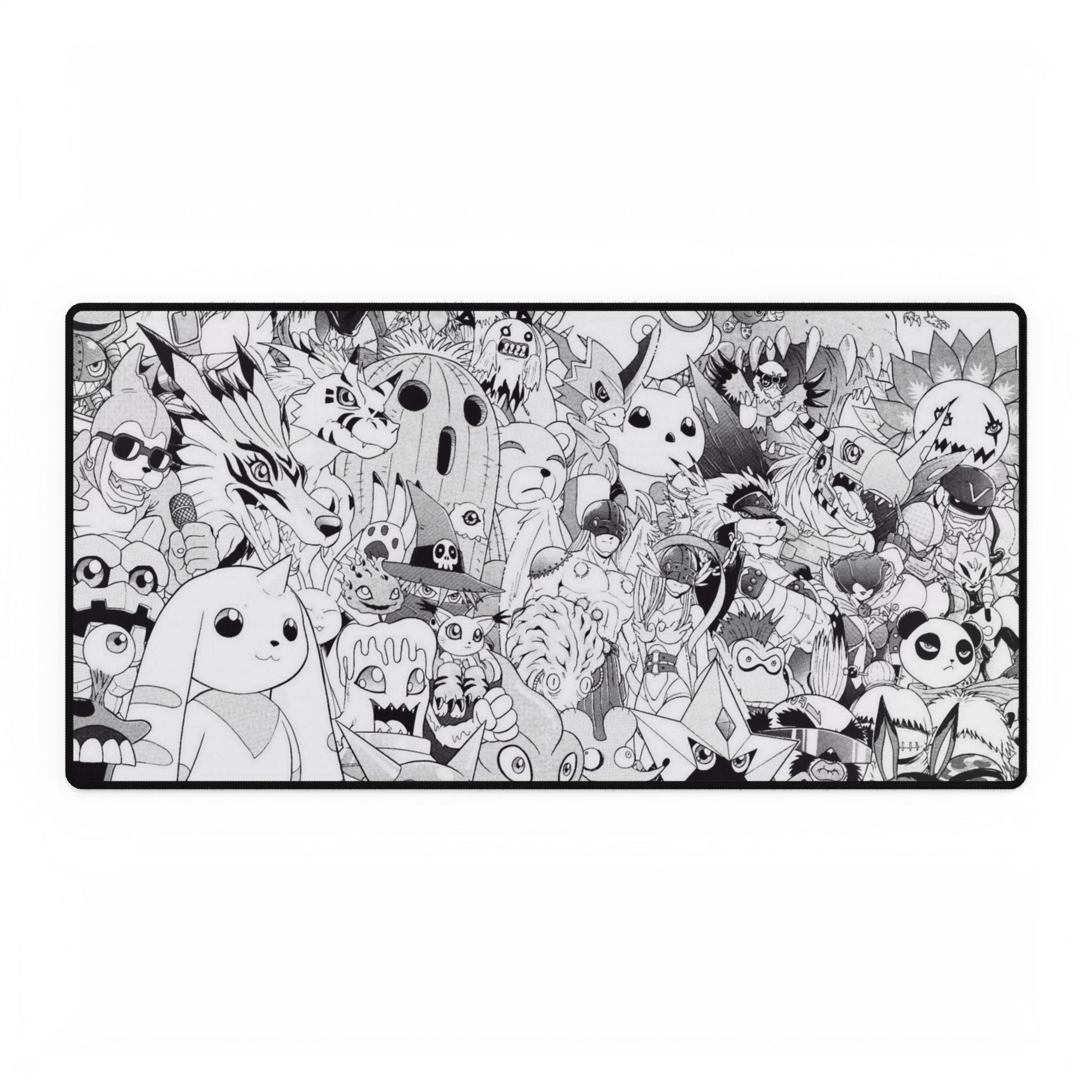 Digimon Black & White Doodle Desk Mat — Cute Cartoon Character Gaming Mousepad
