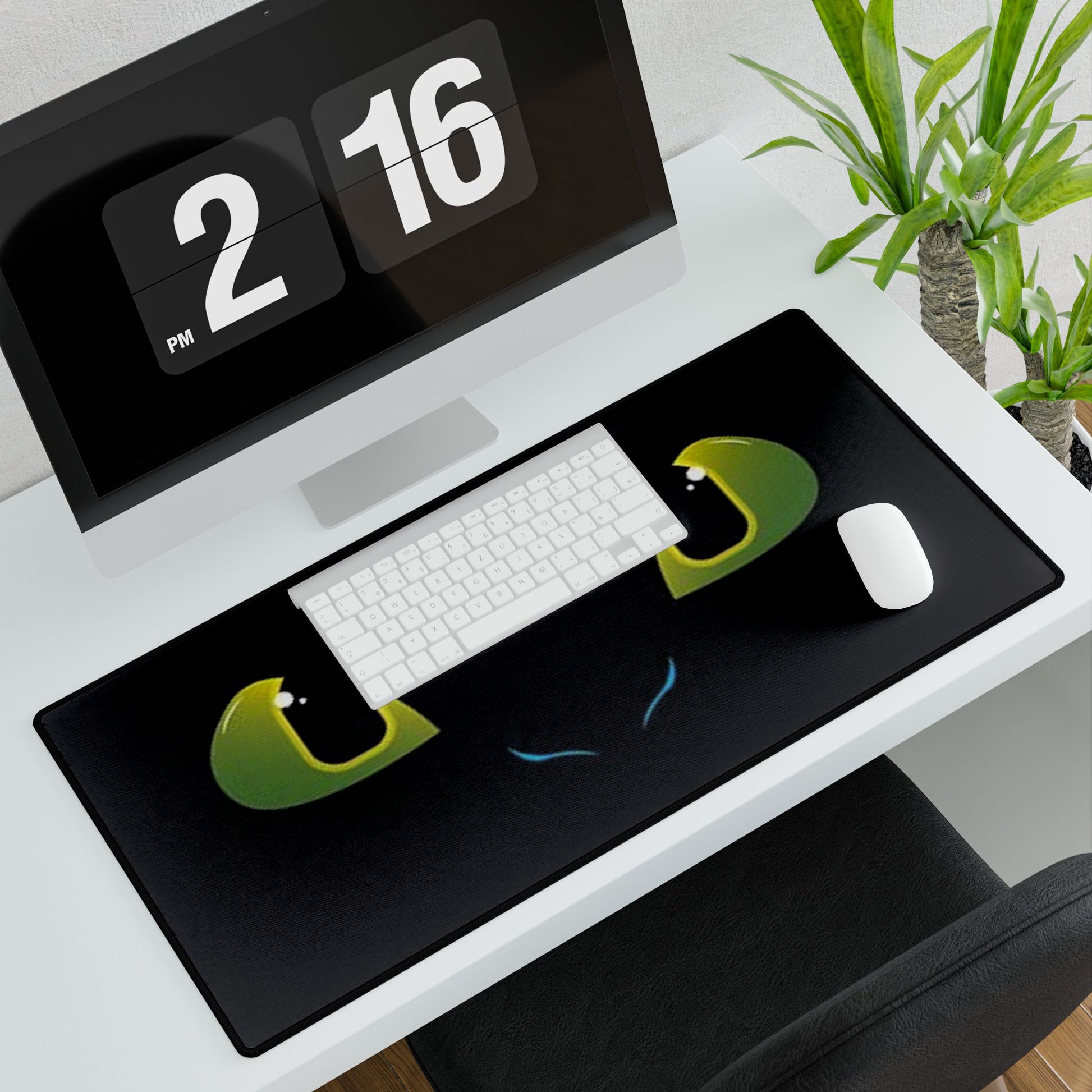 Call it the quiet companion on long creative nights: a wide, low-profile desk mat printed with a pair of luminous cat eyes that seem to watch over your workspace. The deep black field lets the green-gold irises and subtle blue nose highlights pop, bringing a little mystery and focus to your desk. It lays down a smooth, consistent surface for mouse movement, dampens keyboard clatter, and visually anchors monitors, sketchpads, or streaming setups. Slide your keyboard up on it, set a mug to the side, and the design turns an ordinary work session into something moodier and more deliberate — little comfort and character for people who like their gear with attitude and atmosphere.