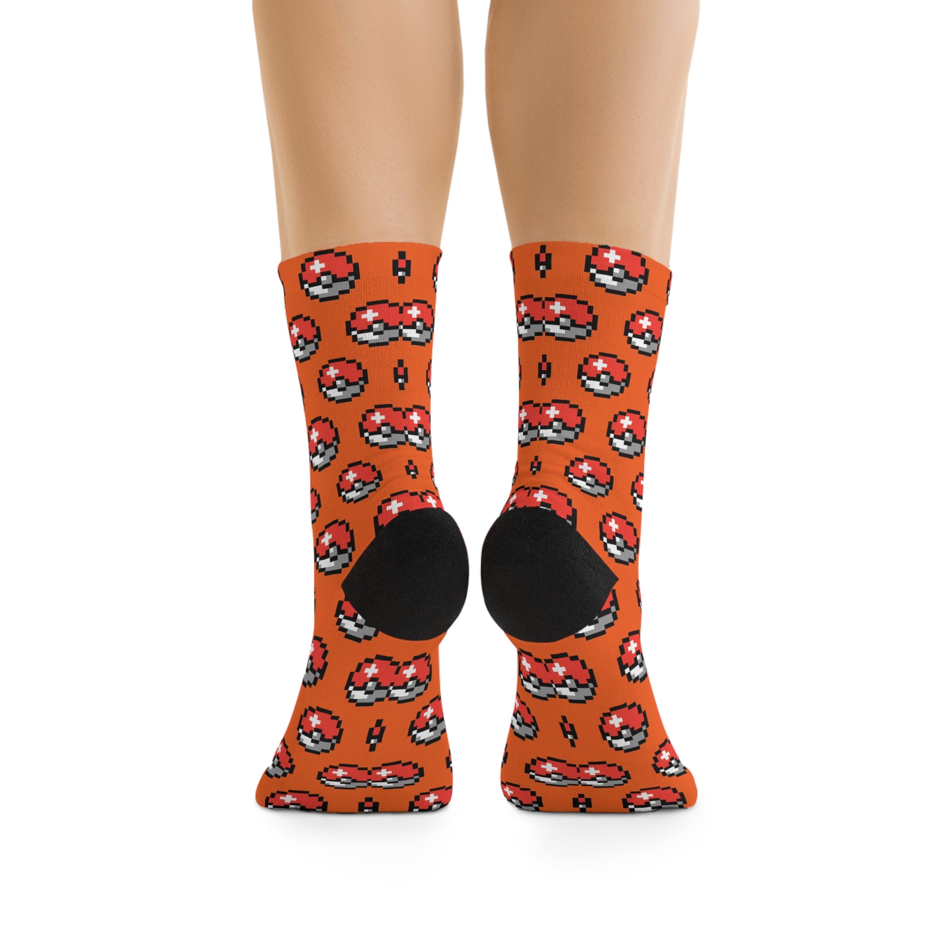 Pixel Ball Poke Pattern Socks | Orange Poly Crew Socks