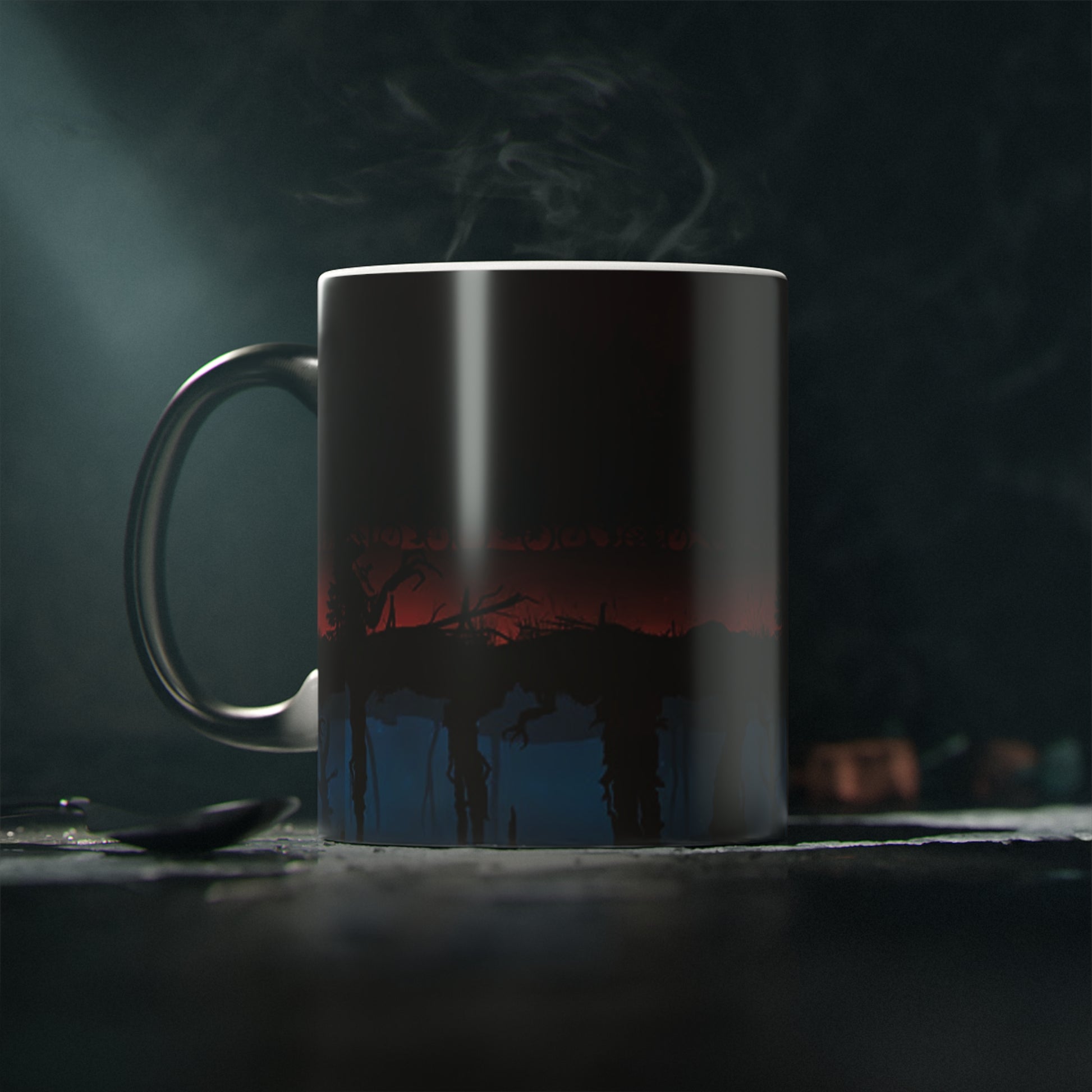 Stranger Kids Silhouette Magic Mug | Retro Bike Ride Upside-Down Forest